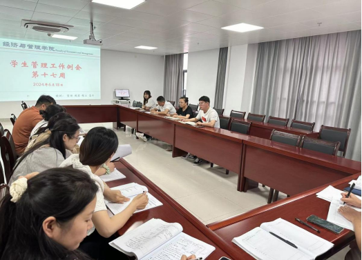 2024年6月18日,beat365英国官网网站在行政楼725会议室召开本学期第十七周学生管理工作例会,副院长秦品德、书记助理叶赵强以及全体辅导员参加会议,会议由院长吴玲主持。