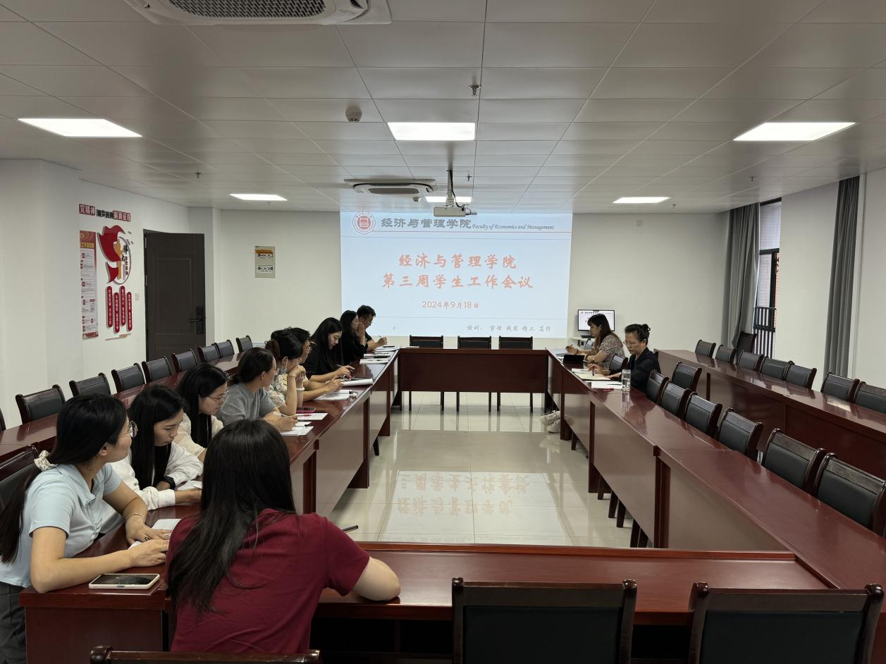 随后,吴玲院长对本周重点工作进行了部署:一是各辅导员要做好学生上课考勤和纪律管理工作,值班时间一定要到现场了解具体情况,以教风促学风,激发学生内驱力;二是要顺利完成新生军训最后一周收尾工作,同步衔接进行新生第一课和第一次晚自习;三是要统计并分析各班第二课堂学分情况,做好德智体美劳相关领域的活动规划;四是要高标准、严要求做好学生会换届工作,提前发布换届通知,给每一名经管学子在学院这个大舞台上展示的机会;五是对新入职辅导员进行奖助学金和第二课堂等相关工作的培训,保证新生工作的顺利进行。