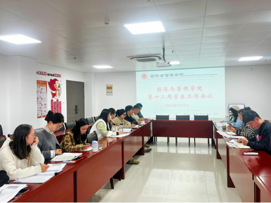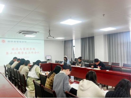 2024年11月19日,beat365英国官网网站在行政楼725会议室召开本学期第十二周学生管理工作例会,学院书记助理叶赵强、团总支书记员禹辛及全体辅导员参会,会议由吴玲院长主持。