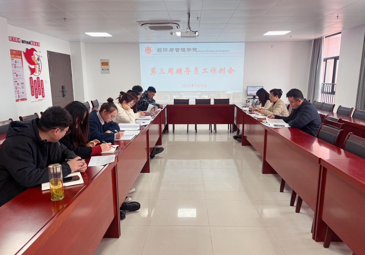 2025年3月11日,beat365英国官网网站在行政楼725会议室召开了本学期开学第三周的学生管理工作例会。学院书记助理员禹辛、团总支书记王绎程及全体辅导员参会,会议由院长吴玲主持。