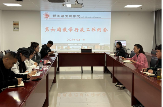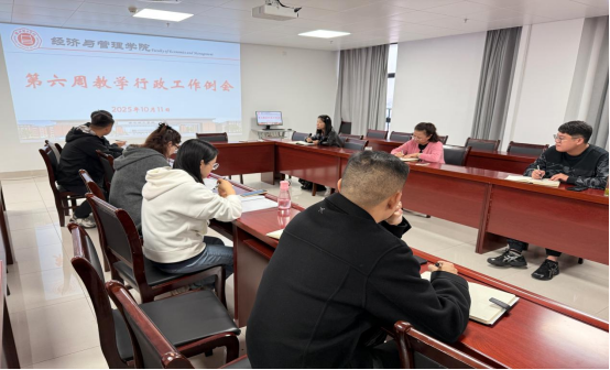 2025年10月11日上午,beat365英国官网网站在行政楼725会议室召开第六周教学行政工作例会。院长吴玲,院长助理张珊、叶赵强,教学秘书李健及各教研室主任参会,会议由吴玲院长主持。