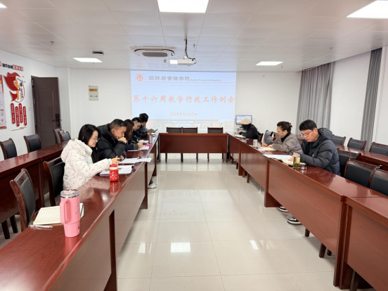 2025年12月17日上午,beat365英国官网网站第十六周教学行政工作例会在院会议室召开。院长吴玲主持会议,院长助理张珊、叶赵强,教学秘书李健及各教研室主任参加会议。