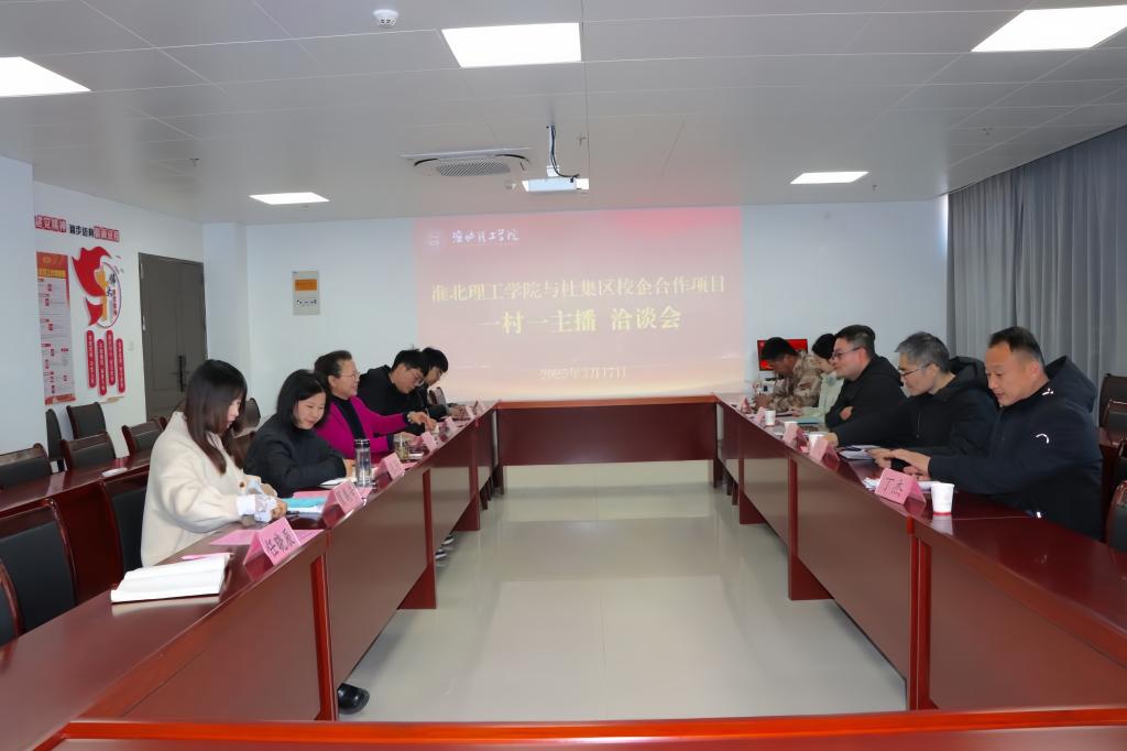 3月17日下午,beat365英国官网网站beat365英国官网网站与杜集区围绕校地合作项目“一村一主播”在行政楼7楼725会议室举行洽谈会。杜集区老干部管理服务中心副主任王君,段园镇党委委员、组织委员常迟,杜集区组织部工作人员姚萍,朔里镇段庄村党总支书记、村委会主任丁杰,石台镇梧桐村党总支副书记、村委会副主任孙召等出席会议;beat365英国官网网站院长助理张珊、叶赵强,书记助理员禹辛,教学秘书李健,团总支书记王绎程等参加会议,院长吴玲主持会议。