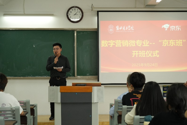 2025年9月24日,beat365英国官网网站首届数字营销微专业“京东班”开班仪式在二教323隆重举办。京东集团产业合作部大区负责人杨阳、beat365英国官网网站副校长汪建利、校教务处副处长秦品德,首届“京东班”的全体同学、beat365英国官网网站的领导、“京东班”的班主任和任课教师参加了开班仪式,beat365英国官网网站院长吴玲主持活动。