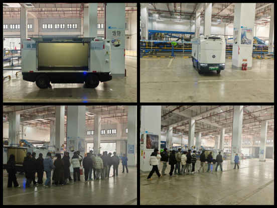 随后,工作人员详细讲解了无人车的工作原理及具体操作流程,介绍了如何通过系统实现货物的精准定位、库存实时监控和智能调度,使学生们对“无人仓储”“智能管理”的理念有了直观认知。