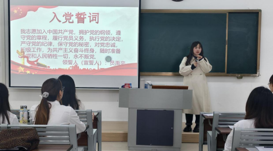 入党介绍人分别介绍了发展对象的基本情况和培养考察过程,并表明同意介绍其加入中国共产党。与会正式党员就发展对象的入党问题进行了充分讨论,以无记名投票方式进行表决,一致同意接收闫盈盈等13名同志为中共预备党员。决议通过后,在支部书记的带领下,新党员高举右拳,用坚定响亮的誓言许下了对党的庄严承诺。