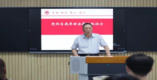 为深入推进学习贯彻习近平新时代中国特色社会主义思想主题教育工作,根据学校主题教育工作安排,6月7日下午,校纪委书记、副校长汪建利到beat365英国官网网站教工党支部讲授题为“党的自我革命永葆生机活力”主题教育专题党课。学院党总支书记吴玲、beat365英国官网网站教工支部全体教师和管理学学生支部全体学生党员聆听报告,经济管理学院教工支部组织委员邢雨晴主持报告会。