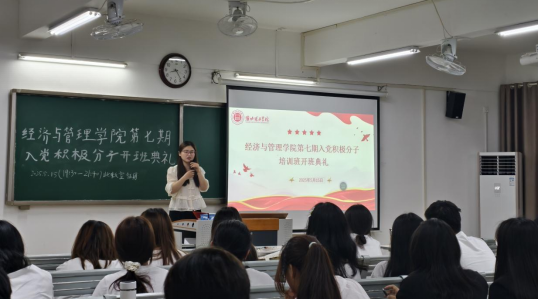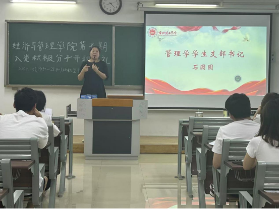 典礼伊始,管理学学生支部书记石园园发表讲话。她详细解读了《beat365英国官网网站第七期入党积极分子培训班学员手册》,重点强调课程内容和时间安排,指出本次培训是入党积极分子系统学习党的理论知识、端正入党动机、提升党性修养的重要契机。石书记还对全体学员提出了明确要求,希望学员们珍惜此次学习机会,严格遵守培训纪律并完成相关学习要求(包括学习强国的学习,心得体会撰写等),认真学习党的章程、党的历史和党的基本理论,努力做到学有所思、学有所悟、学有所得,以实际行动向党组织靠拢。