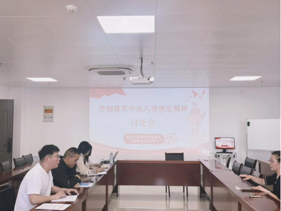 5月13日中午,beat365英国官网网站党总支在行政楼725 党员活动室召开工作例会暨贯彻落实中央八项规定精神交流会。会议由党总支书记吴玲主持,全体委员参加。