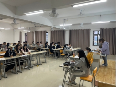 本次比赛分为初赛和复赛两轮进行,学生们热情高涨,在2022年5月9日晚的初赛中共有42支参赛队伍分成四组进行角逐,辅导员员禹辛、苗青青、刘子恢及任课教师胡月分别带队担任评委。初赛分两轮进行,第一轮为1v1形式的单选题对抗赛,先获5分的队伍即可晋级下一轮。第二轮为1v1v1单选多选对抗赛,先获5分的队伍进入复赛。