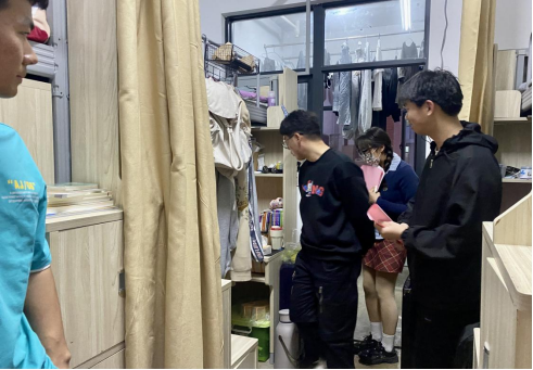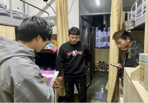 走访过程中,叶赵强带队对学生内务进行了细致检查,同时向学生们宣传春季传染病的防控措施,学生会成员向每个宿舍发放《春季传染病防控措施知识宣传册》,并予以耐心解读。在查寝过程中,叶赵强结合宿舍具体情况和学生进行深入交流,提醒大家要重视宿舍卫生及宿舍安全,希望同学们养成良好卫生习惯,不要随地吐痰、勤洗手、勤换洗、吃熟食、喝开水;按时完成预防接种;在学校还是要戴好口罩、开窗通风、合理膳食、积极锻炼、少凑热闹、规律作息;如出现发热、咳嗽、头痛、乏力等症状时应及时到校医院就医;如果传染病被确诊,积极配合治疗,做好消毒隔离,时刻以良好的精神状态坦然面对生活。