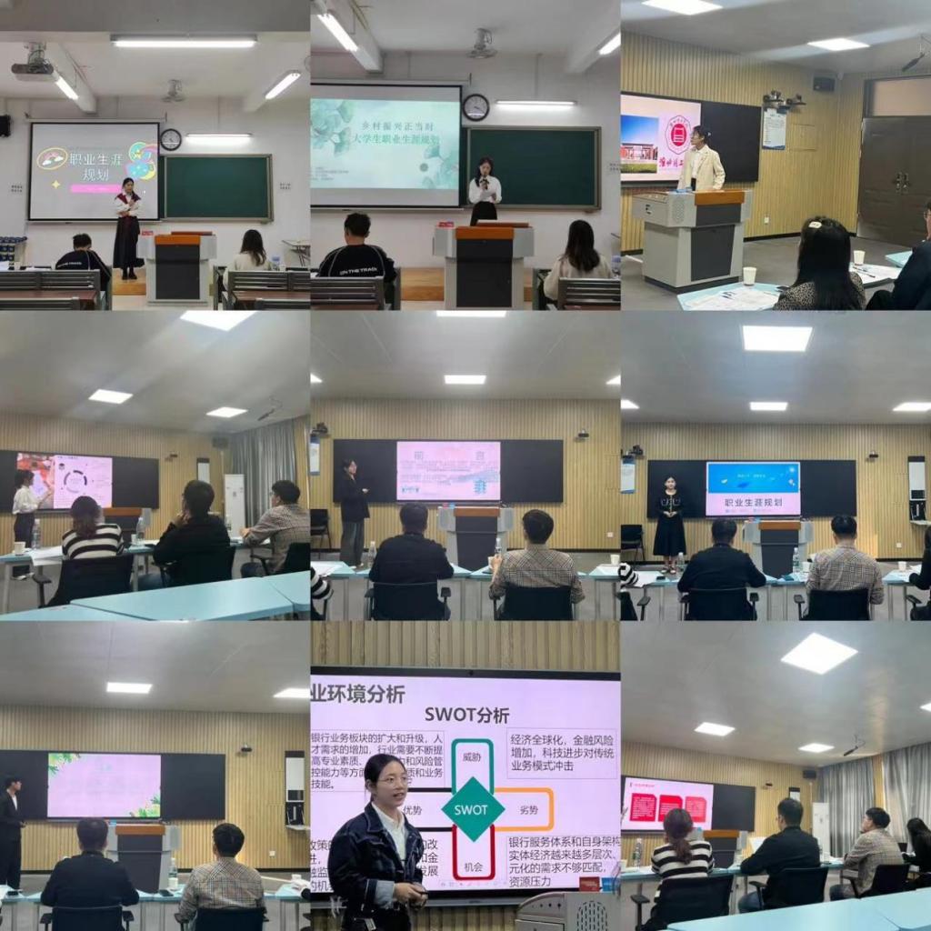 截至10月27日8点,我院选手报名人数49名。其中,就业赛道16名,成长赛道33名。10月27日下午2点于一教210,211以及212三个会场同时进行,学院组织本专业的老师和辅导员担任评委对学生职业规划汇报进行评选及针对性的评价和指正。参赛选手按照抽签编号依次上台,从自我认知、自我规划、职业认知、职业定位评估与调整以及职业道德等方面详细阐述了自己的职业生涯规划,全方面的展示个人对目标职业的理解。同时本次比赛主要为学生汇报、答辩、交流三个环节进行,本着“公平、公正、公开”的原则,按照评审标准最后由评委老师进行评分。选手们充分发挥了自身才能、语言表达能力、人际沟通能力、以及对未来自身发展的规划能力。