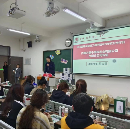 第一场招聘由内蒙古蒙牛高科乳业有限公司合肥分公司于下午14:00-15-00进行线下宣讲。内蒙古蒙牛高科乳业有限公司合肥分公司是蒙牛常温事业部销售管理中心安徽大区。本次招聘,内蒙古蒙牛高科乳业有限公司合肥分公司提供多种职位选择,以满足不同人才的需求;同时,还详细介绍了公司的发展通道、招聘岗位以及薪酬福利,以吸引更多优秀毕业生的加入。通过线下宣讲,同学们从企业简介、成长体系、现场问答等多个环节对企业进行更好的了解,并有30名同学积极投递简历,参与面试。
