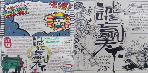 手抄报制作大赛则是让学生们通过亲手制作手抄报来表达对诚信的理解和感悟。在比赛中,学生们充分发挥创意,将诚信理念融入到手抄报的设计中。评委们根据手抄报的制作技巧、创意和内容进行了综合评定,选出了优秀作品。