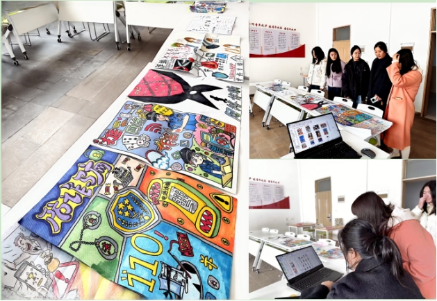在创作筹备阶段,同学们主动通过反诈宣讲资料、官方防诈科普平台等渠道,系统学习校园贷、刷单返利、冒充老师或客服诈骗、游戏账号交易诈骗等高频骗局的作案手法、识别技巧与防范要点。创作过程中,同学们各展所长、巧思迸发:有的同学梳理核心反诈知识点,提炼出“擦亮双眼识骗局,守好青春钱袋子”“反诈无小事,安全记心间” 等醒目警示标语;有的同学专注构图设计与色彩搭配,通过鲜明的视觉对比强化宣传效果;还有不少同学将校园生活场景融入漫画创作,用生动形象的画面还原诈骗套路、揭露诈骗本质,让专业的反诈知识变得通俗易懂、深入人心。一幅幅作品主题鲜明、创意十足,既展现了学子的艺术才华,更传递着青年一代的反诈责任感。