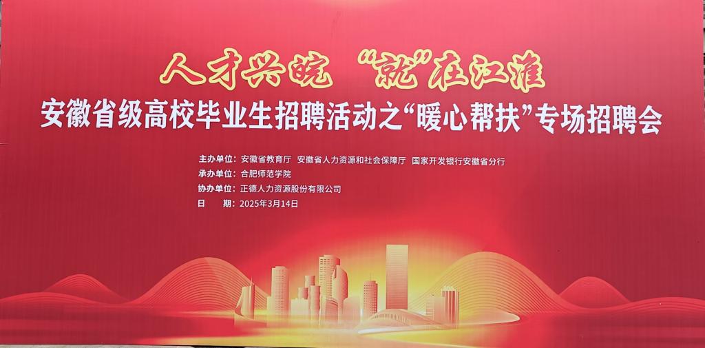 2025 年 3 月 14 日,beat365英国官网网站组织学生前往合肥师范学院,参加由安徽省教育厅、安徽省人力资源和社会保障厅、国家开发银行安徽省分行联合主办,合肥师范学院承办,正德人力资源股份有限公司协办的 “人才兴皖,‘就’在江淮——安徽省高校毕业生招聘活动之‘暖心帮扶’专场招聘会”。