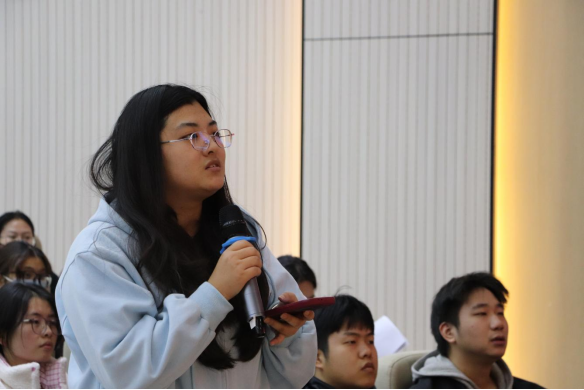 在互动环节中,毕业班学子就岗位发展、培养周期、职业晋升等问题进行了提问,董文斌耐心细致地逐一解答,结合具体案例为同学们分析了职业成长路径,鼓励大家珍惜机遇、脚踏实地,在实践中积累经验、实现自我提升。